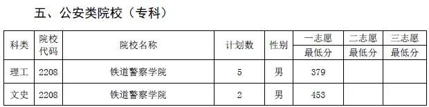 (二)按照公安部、教育部等相关文件的要求,中国人民公安大学、中国刑事警察学院、铁道警察学院、南京森林警察学院、贵州警察学院按照招生计划的5倍比例划定面试和体检人员分数线,并组织上线考生参加面试、体能测评。其中,铁道警察学院(专科层次招生)采取二本线上填报志愿考生不划比例,均参加面试,二本线下(专科线上)考生按照招生计划数5倍比例划定面试和体检人员分数线,并组织上线考生参加面试、体能测评。