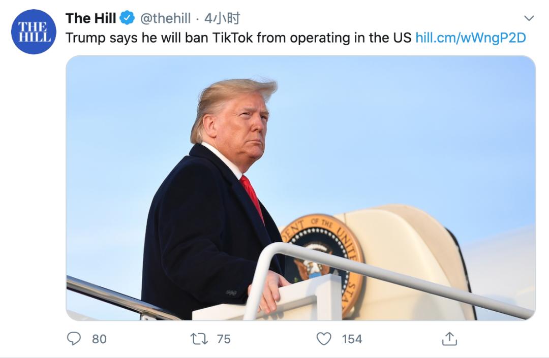 就在不久前,特朗普刚刚表示计划下令将拆售字节跳动对TikTok美国业务的拥有权。7月31日,特朗普在准备前往佛罗里达州时就曾向在场记者表示:“我们正在审视TikTok,可能我们会全面封杀它,也有可能采取其他行动。”