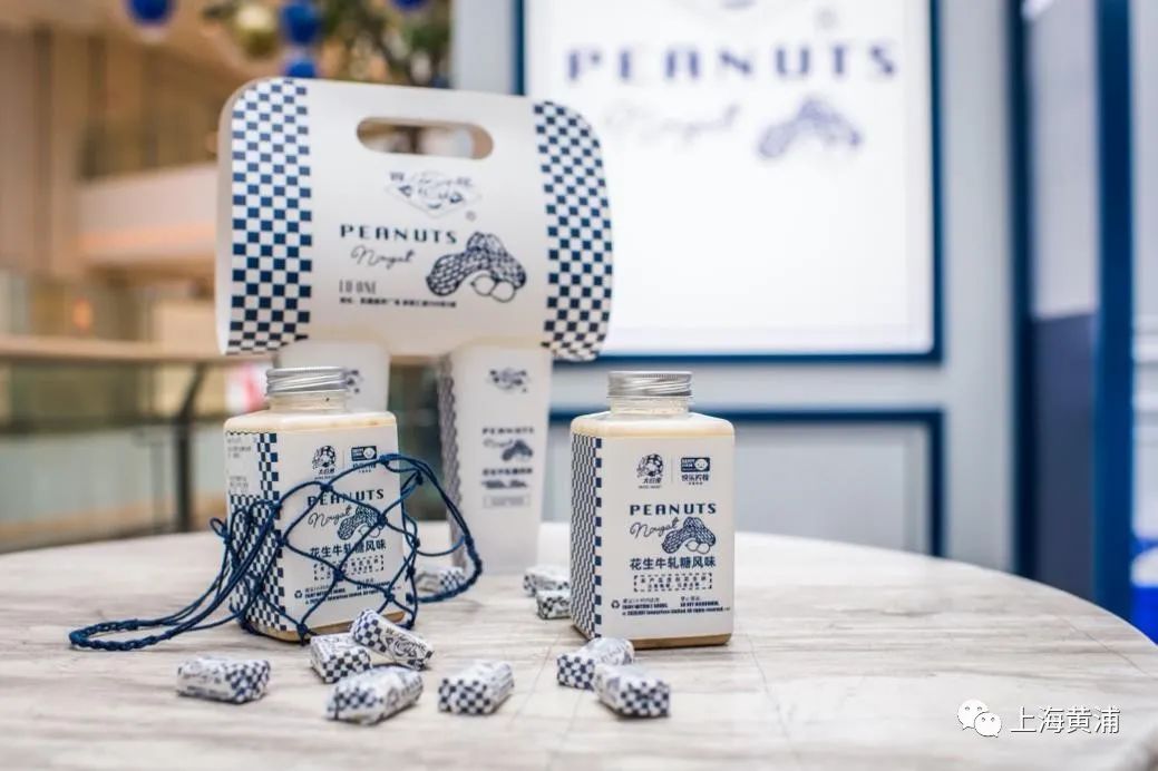 与牛轧糖包装一致的蓝白主义为基调的花生牛轧糖快闪店,散发出了别样的创新跨界新风尚,“老字号”的品质保证与时尚元素发生碰撞,所产生的奇妙化学反应,不仅可以俘获众多“年轻的心”,更开启了“老字号”品牌发展的新纪元。