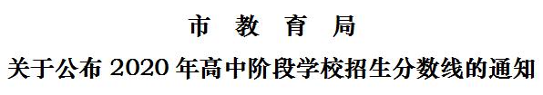 根据省教育厅、市教育局关于统筹做好高中阶段学校招生工作的政策规定,按照高中阶段学校招生计划及初中毕业生学业考试成绩,经研究,确定2020年秋季高中阶段学校各批次招生资格线如下: