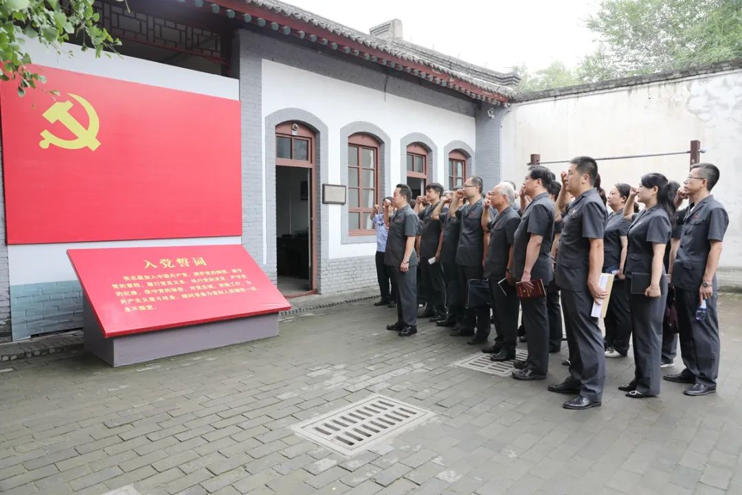 “我宣誓:我志愿加入中国共产党……”铿锵有力的声音,回荡在旧址上空。面对鲜红的党旗,全体党员在李社武院长的领誓下,重温入党誓词,坚守奋斗初心。