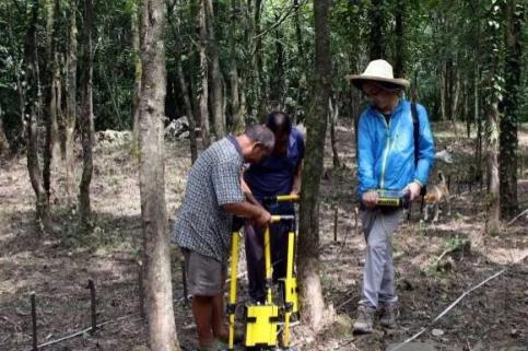 海龙屯“老王宫”的探测工作,具有一定难度。“我们每个探测点的间距是10厘米,但植被太多,即便砍掉灌木丛,其残存的根部,也常影响探测设备的落点。”石战结说,为了确保探测精确度,团队只好不断调整探测线路。