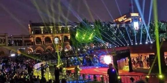 夜景灯光、音乐喷泉、时空走廊、中央舞台等布景,