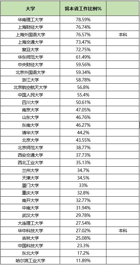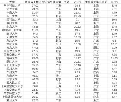 名校毕业生留本省比例主要受三个因素的影响,一是经济发展水平,广东、上海经济发达,留本省比例自然就高。