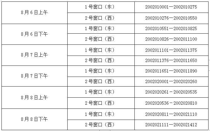 2020年8月5日上午8:00—11:30,下午2:30—4:00