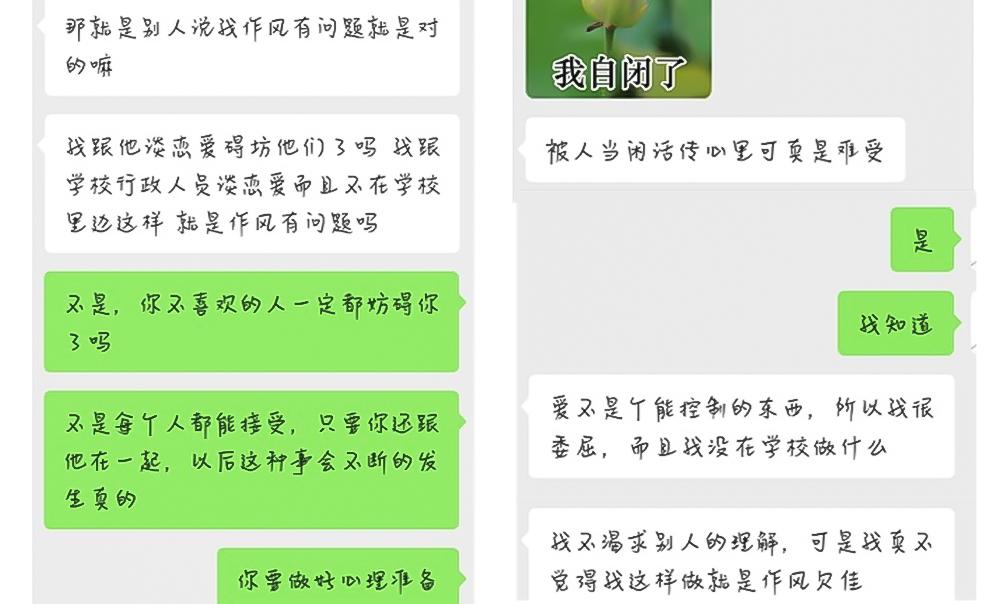 她不知道为什么,就去问了自己的室友,室友吞吞吐吐地告诉她,是因为班里同学认为她生活作风有问题,太多人看到她和那个老师在校园里牵手拥抱了。