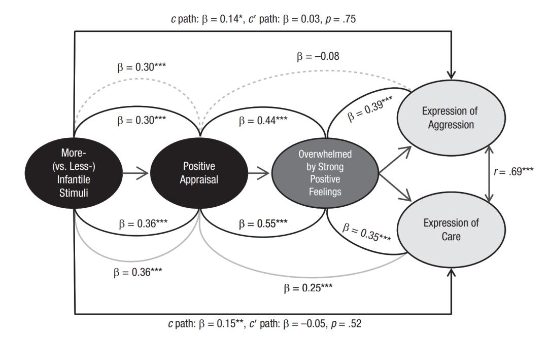 Aragón, O. R., Clark, M. S., Dyer, R. L.,& Bargh, J. A. (2015). Dimorphous expressions of positive emotion: Displays of both care and aggression in response to cute stimuli. Psychological Science, 26(3), 259–273.