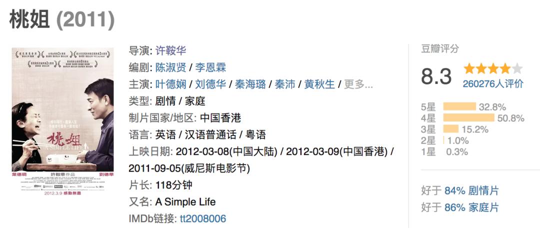 刘德华投了3000万,并主动担演影片男主,《桃姐》才得以顺利拍摄下去。
