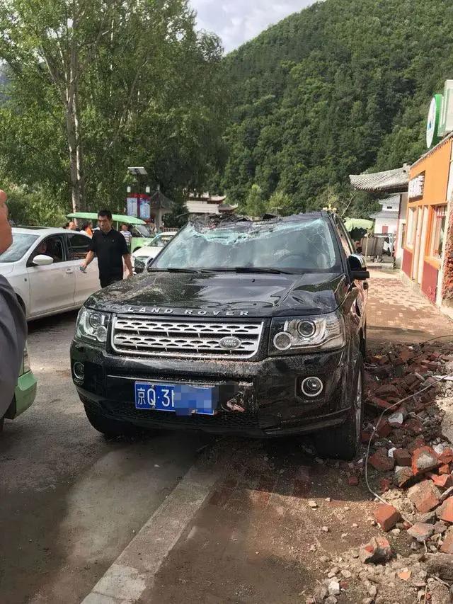 坍塌的墙体位于景区售票处附近,同时被砸的还有北京游客杨先生的路虎车。贾女士称,她家的是宝骏730,事发当天她家的车和杨先生的车都是停在此处,距离景区售票处20米。景区清理了坍塌的墙体废墟后,他们发现车辆的前车盖和右侧车门“受伤”严重。