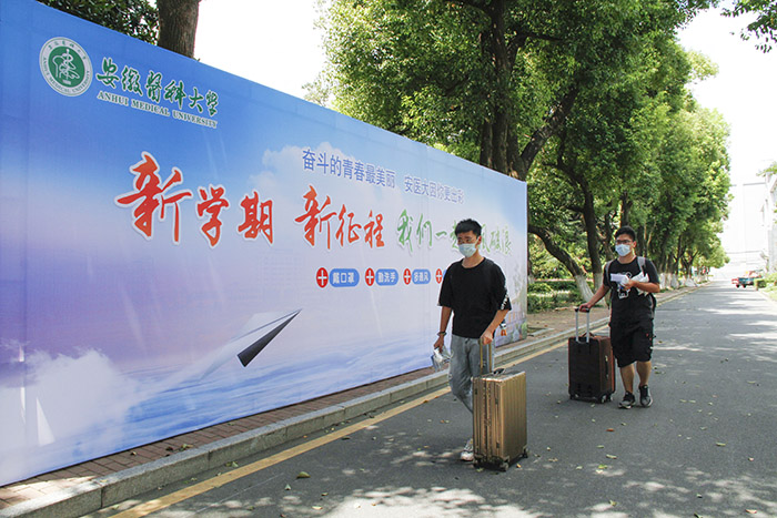 8月1日,安徽医科大学迎来了2020年秋季学期返校报到的首批本科生。据了解,根据上级文件精神和学校教育教学工作需要,学校今年秋季学期将按照“一院一案、一生一策”原则,于8月1日、8月8日至9日和8月22日三个批次错时有序开学。