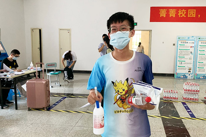 临床医学(“5+3”一体化)专业2018级本科生任子鸣在南校区完成报到手续后,也表达了自己返校的感受。“尽管天气炎热,辅导员老师和志愿者仍然尽心尽力、坚守岗位,大家都在为返校复学做努力,我们更应该带着回家的心情返校,怀着济世的志向学医!”