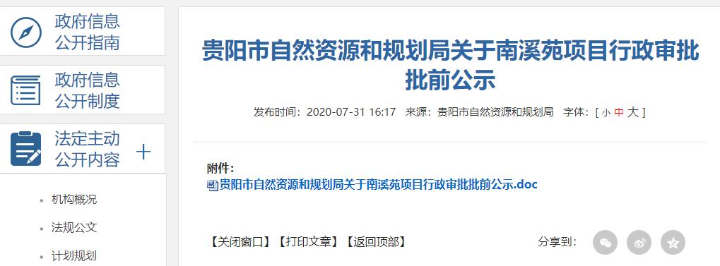近日,贵阳市自然资源和规划局发布南溪苑项目行政审批批前公示。据悉,该项目为住宅安置房。