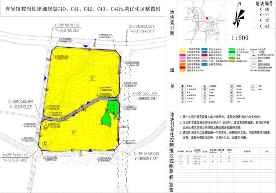 C-41为公共绿地(G1),地块面积3491.02平米,绿地率90%;C-43为公路交通用地(S1),地块面积3558.32平米。