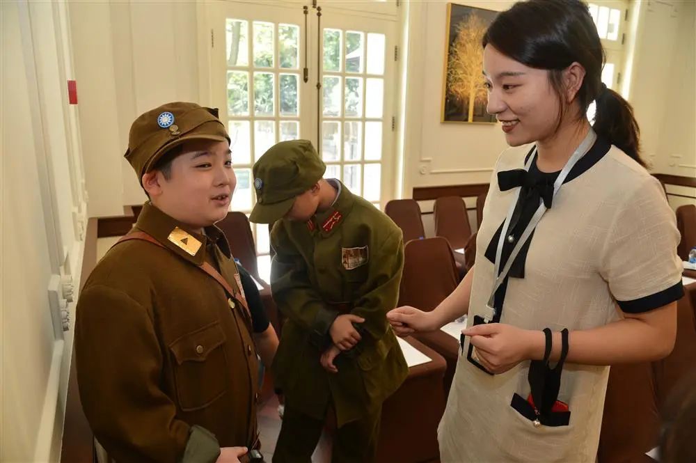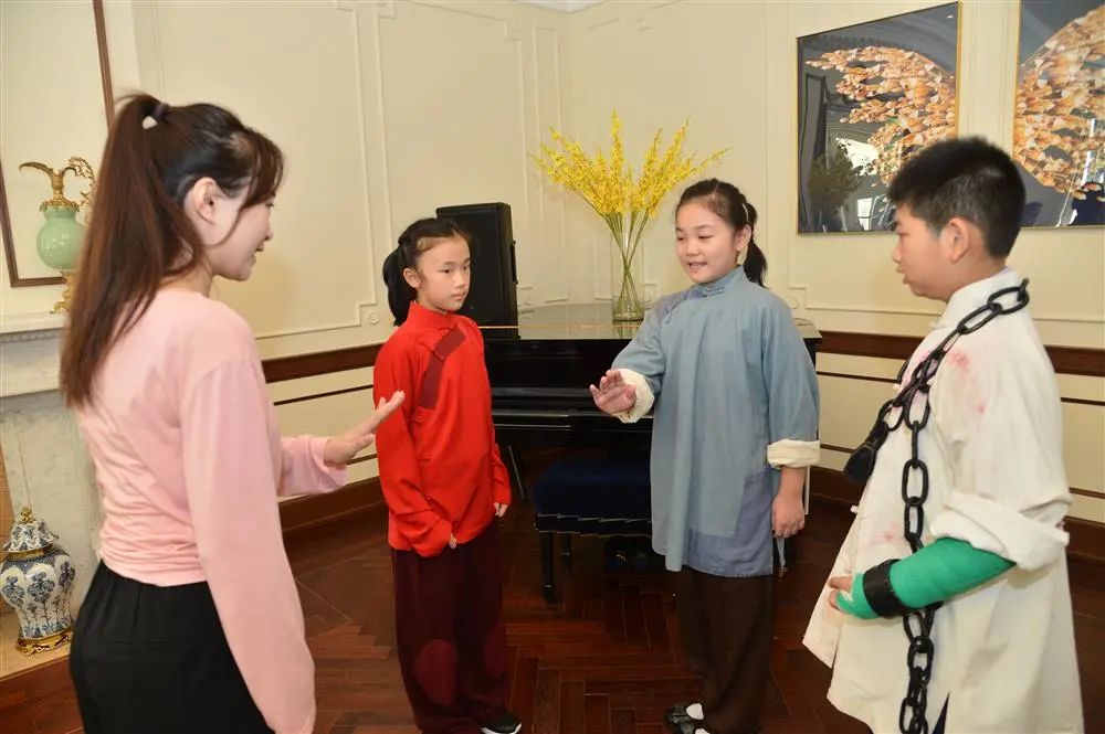 3日体验活动内容丰富,小朋友从一楼展示厅了解沪剧起源和发展过程,看纪录片《与时代同步》。最欢快的环节是在二楼进行沪剧服饰及道具体验。沪剧院精心准备经典剧目《红灯记》《陆雅臣卖娘子》和《芦荡火种》小码戏服。穿上长袍马褂,小朋友在沪剧院老师指导下模仿角色唱词,并摆出经典造型姿势,拍摄“剧照”。以沪剧相关元素绘制扇面,也吸引大家摩拳擦掌。