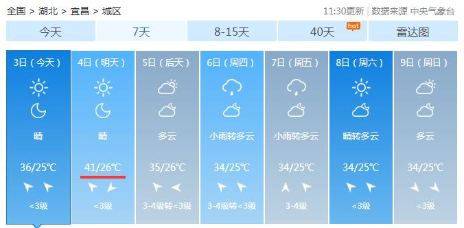 8月4日宜昌最高温将达到41℃!