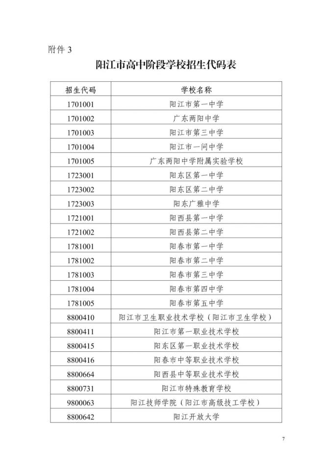 阳江一中、广东两阳中学、阳东一中、阳春一中、阳西一中、阳春二中为第一批招生学校,其他普通高中是第二批招生学校,中等职业学校为第三批招生学校;