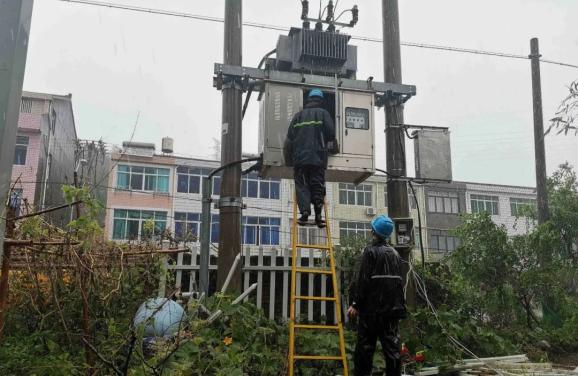 临海市白水洋镇全力以赴确保防汛防台不留死角,供电部门抢修队伍24小时待命,冒雨完成电力抢修工作,1129户停电群众已全面恢复供电。