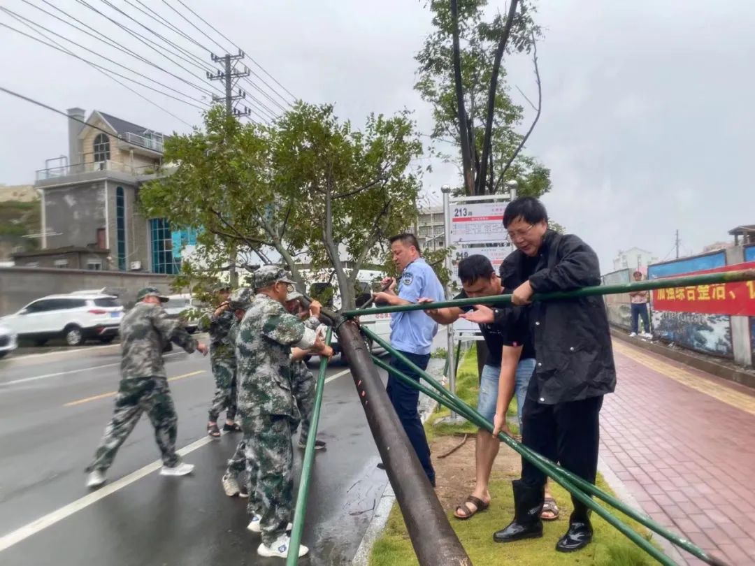石塘镇村镇办会同辖区民兵一起参与台风过后倒伏树木扶正、广告牌清理等,确保道路交通安全。