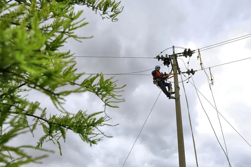 台风过境后,部分电缆掉落,为保障供电线路安全,泽国镇组织开展电力检修。