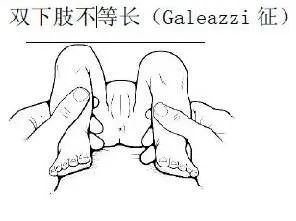 大腿、腹股沟和臀部的皮纹不对称,包括皮纹的数量、位置和长度。