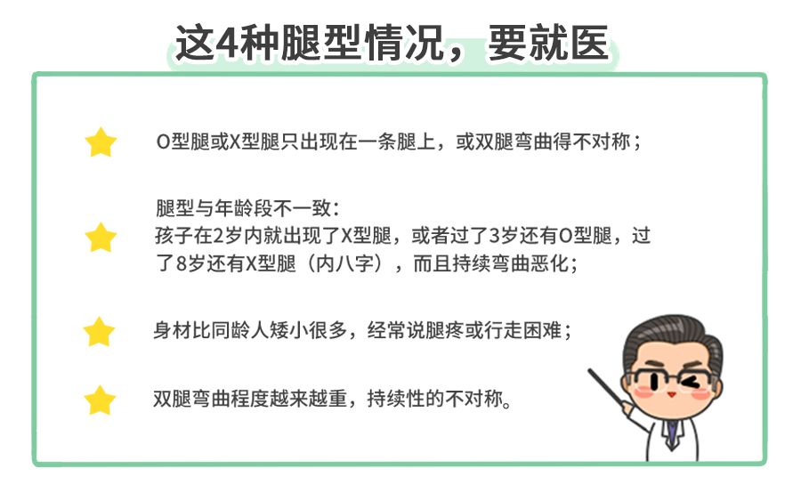 当然,要是家长发现有以下4种情况,那就不是简单的X、O型腿问题了,需要立刻交给医生解决。