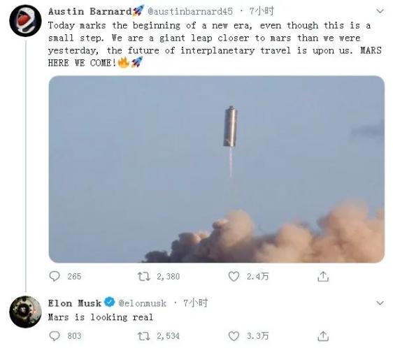 而看似轻松的 150 米的跳跃,其实对火星旅行来说,有着很大的意义。正如马斯克在推特上所回复的,人类的火星梦真的越来越真实了。