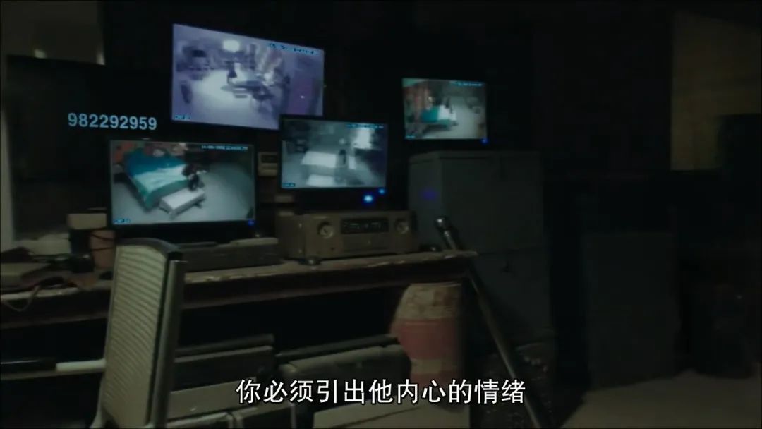 绑匪就坐在监控室里看着这一切,头戴诡异的面具。