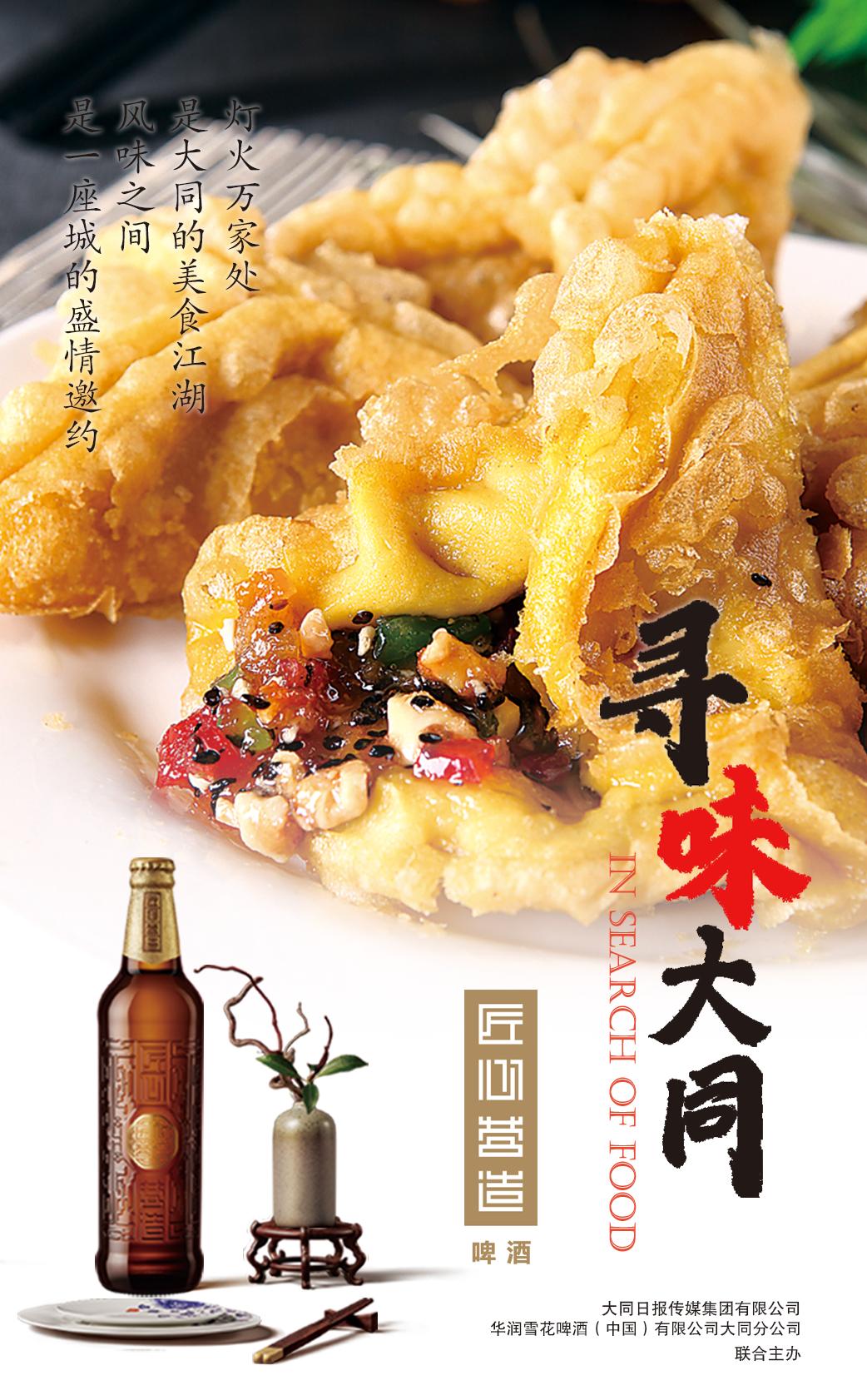 “寻味大同”,旨在展示大同特色美食的匠心与文化,而这一理念正好与“匠心营造”啤酒“以匠心,致匠心”的品牌初衷吻合。相信美食配美酒,一定会带给你前所未有的感受。从现在开始,就让我们一起寻味大同,品味匠心吧。