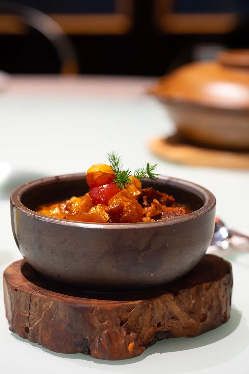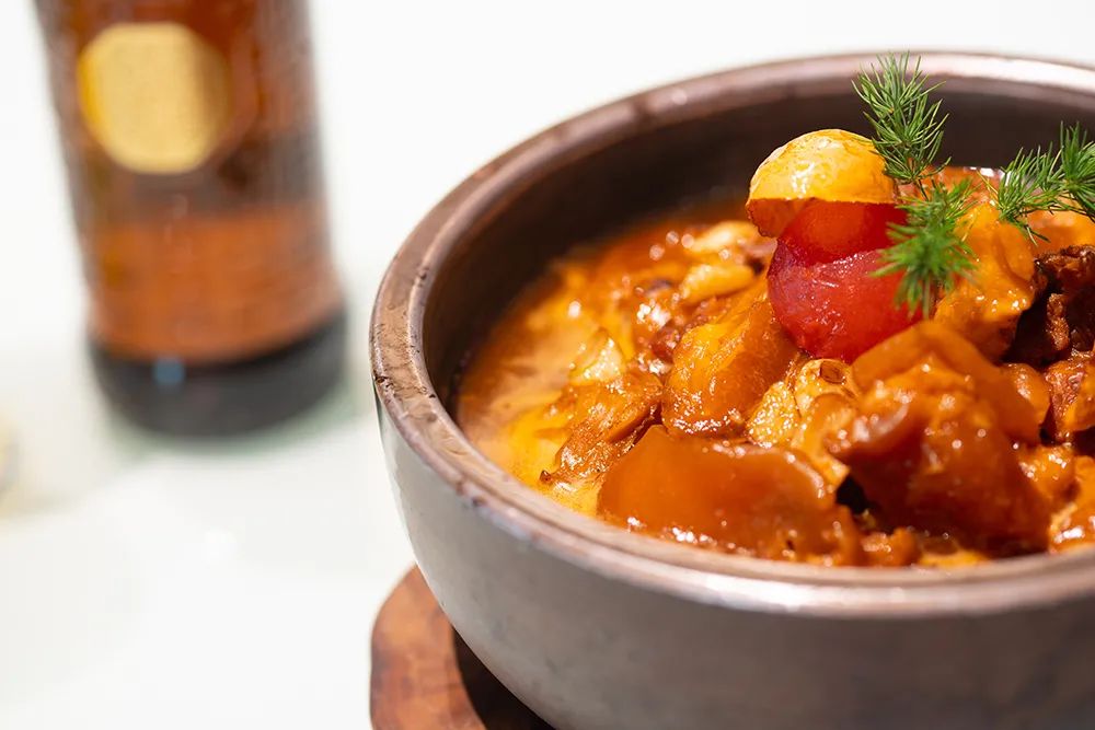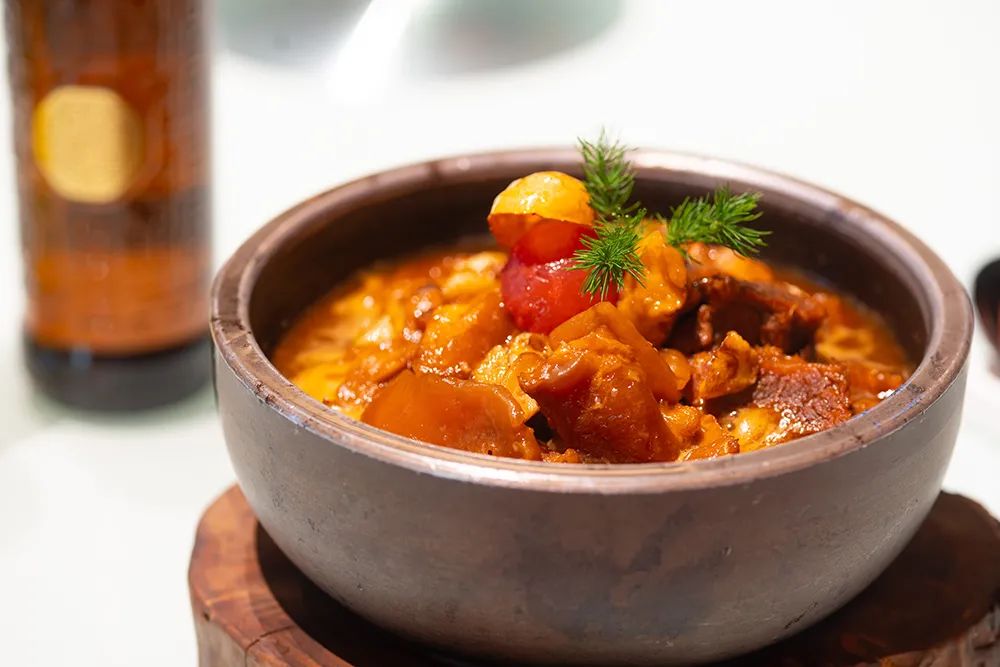 此菜虽是一道家常炖牛肉,但“云锦会”在厨师独具匠心,用一个看上去像石臼的器皿盛菜,使之“颜值”大大提升,见之令人食欲大振。