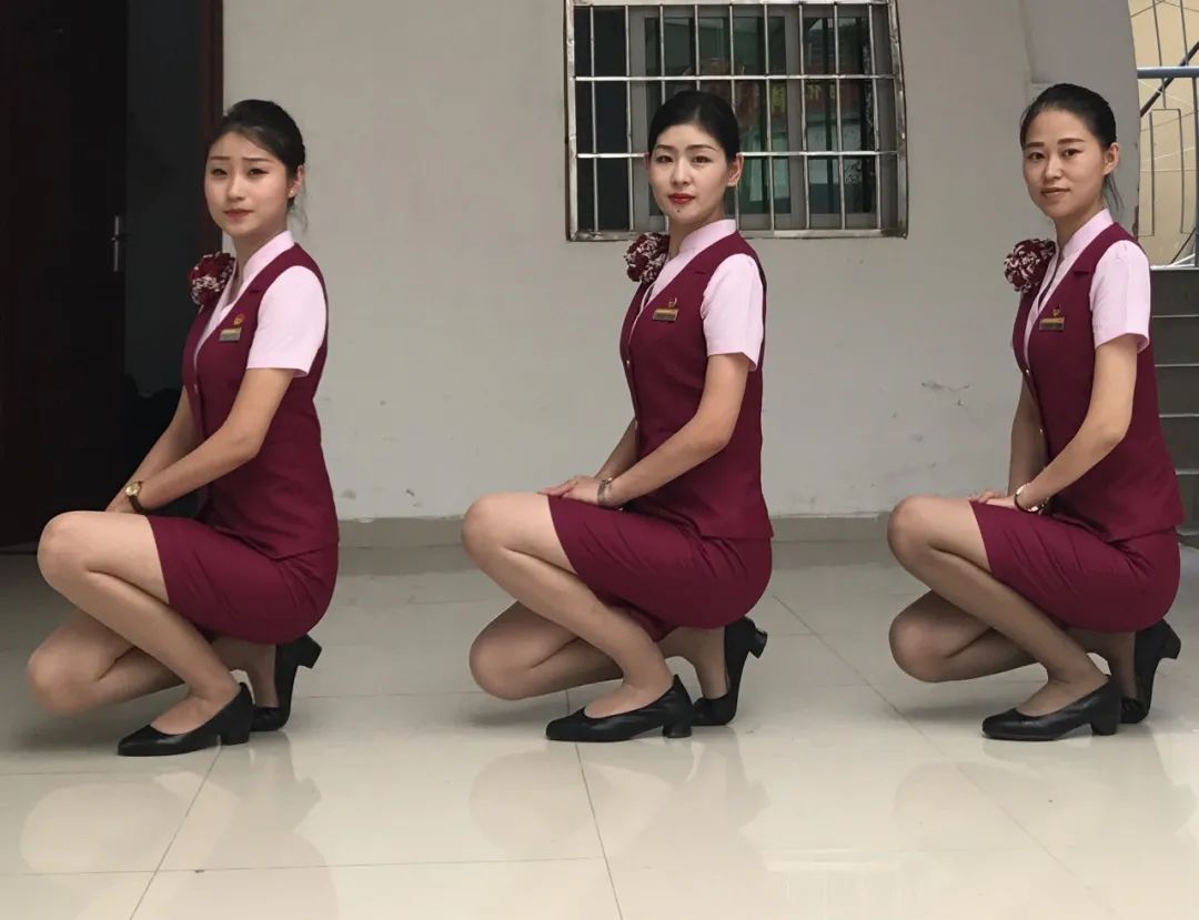 6、女性乘务人员工应着规定颜色袜子,袜口不得露出裙脚,不得有破洞。