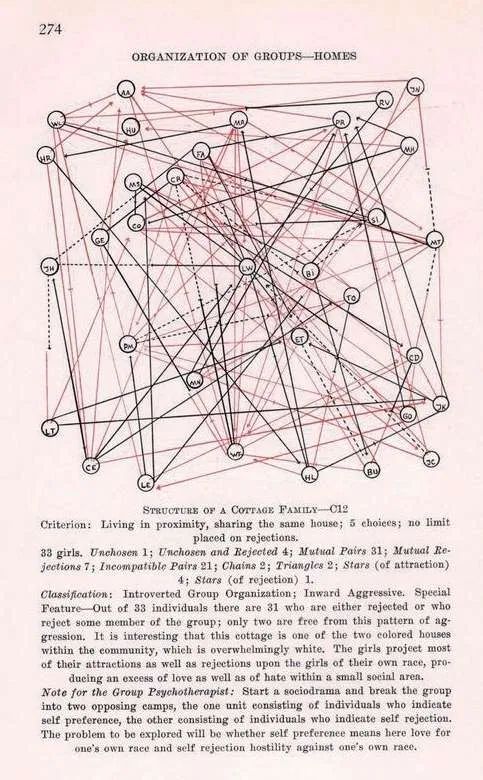 本书对于网络研究的梳理,搭建起了历史学家眼中清晰的知识谱系。弗格森将关于网络的正式研究追溯到十八世纪中期普鲁士东部城市柯尼斯堡的“七桥之谜”:有没有人能一次性并且不重复地走完这七座桥。数学家莱昂纳德·欧拉(Leonhard Euler)受此启发,于一七三五年发明了网络理论。十九世纪的科学家将这套体系应用于几乎所有领域:从制图到电路,再到有机成分的同分异构体。甚至当时的政治思想家也想到将其应用到社交网络的研究中去,这包括约翰·斯图亚特·密尔(John Stuart Mill)、奥古斯特·孔德(Auguste Comte)和亚历克斯·德·托克维尔(Alexisde Tocqueville)等。然而,他们对此没有形成更深刻的见解。一九〇〇年,一位副业为社会学家的教师约翰内斯·德利茨(Johannes Delitsch),发表了一张一八八〇到一八八一年间他教过的五十三名男生的友情矩阵图,成为关于社交网络的标志性研究。此后,也有学者进行了类似的探索,精神病学家雅各布·莫雷诺(Jacob Levy Moreno)利用社交图表研究了纽约哈德森一所学校中“不良少女”之间的关系。情报学家、科学计量学家尤金·加菲尔德(Eugene Garfield)设计出了一种与之类似的图表技术,通过引用“史学图像”将科学领域的历史可视化,索引量和影响因子自此成为衡量学术成果的标准。因为索引量等指标显示科学家更喜欢引用志同道合者的成果,这也就引出了社交网络中的第一条定律——“同质性”。其后,传播理论家埃弗雷特·罗杰斯(Everett Rogers)和迪利普·博沃米克(Dilip Bhowmik)率先提出了同质性“缩小个人交际圈,忽略最佳异质性存在”的缺陷。针对同质性是否就是一种自我隔离,二十世纪七十年代,社会学家韦恩·扎卡里(Wayne Zachary)以一个大学空手道俱乐部为研究对象,描绘成员的关系网络,清楚地展现出俱乐部中的阵营分化。其后,也有其他研究表明这种隔离在不同族群之间存在区别。