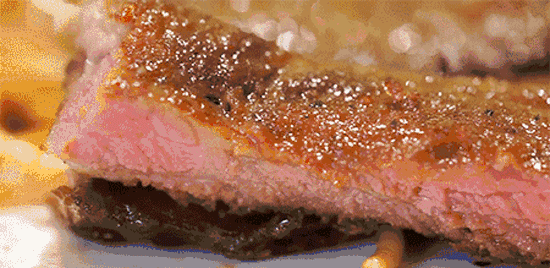 一个阵营坚持,煎牛排的时候千万不能反复翻面,例如一块3厘米厚的牛排,单面必须煎两分钟,之后翻面,另一面再煎两分钟,就完成了。