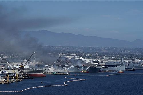 7月12日,正在美国圣迭戈海军基地2号码头维修中的“好人理查德”号两栖攻击舰突发大火,4天以后,大火终于熄灭。目前,该舰甲板烧穿舰桥烧塌,各种电子设备被烧得一塌糊涂。