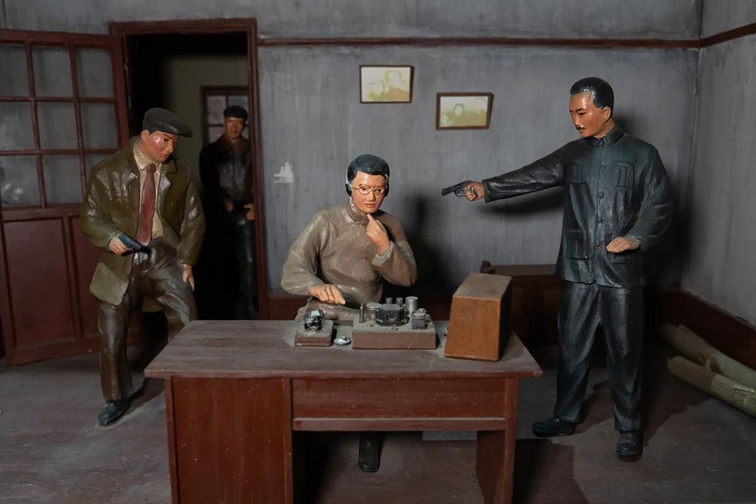 在展厅中,孩子们不时掏出手机拍下展陈,并与讲解员时佳交流。“什么是用摩斯码拍电报?”面对孩子们的“代沟式”提问,时佳将他们领到二楼李白第三次被捕时的场景复原模型前,“这处场景就是李白烈士在给中央发最后一封电报的样子。”