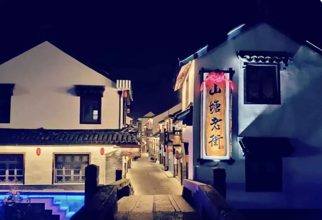 山塘村因其独特的地理位置,占据了连接浙江与上海的有利地域,上海金山廊下山塘村与嘉兴平湖广陈山塘村一河之隔,通过一座重建于嘉庆庚辰年(1820)的古石桥架相连接。“明月山塘”项目地跨浙沪两省,是在长三角高质量一体化发展背景下,南北山塘共推乡村振兴的核心项目,目标打造4A级景区。项目内容是按照“粉墙黛瓦观音兜”的民居风貌,修整山塘老街的沿线古旧房屋,将现有的历史碎片整合起来,融入民俗、非遗、美食文化等成熟产业,建设灯光工程,打造山塘河滨景观带,造就一幅古色古香、灯光璀璨的美好画卷,在保留原有村民市井文化的基础上,打造成为集休闲观光、旅游商贸为一体的历史文化商业街区。