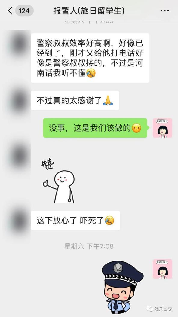 得知该男子安然无恙,丁琦长长地出了一口气,向在日本的报警人反馈了消息。报警人向丁琦表示感谢,为漯河110快速反应、安全处置警情点赞。