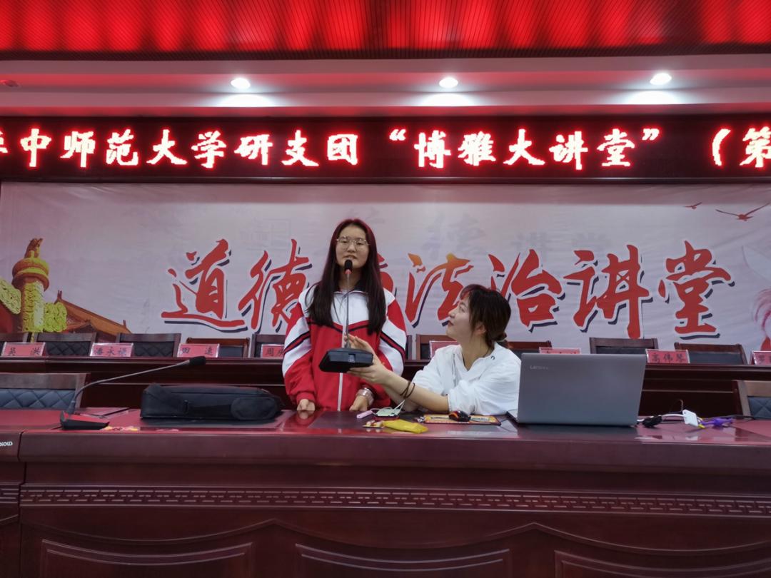 第二十一届研究生支教团代表历史文化学院2019届毕业生付佳琪同学代表分享支教感言。付佳琪向大家分享了支教一年时间里和学生之间发生的温暖小事、在办公室中工作的成长过程、和分队其他成员共同生活的难忘时光,一点一滴的回忆构筑了她难忘、充实的一年。她说到:“如何衡量一年的时间?我想我会用爱来衡量。章开沅先生曾说:爱是教育的本源,也是教育的出发点和最终归宿。”最后,她对即将出征的学弟学妹们表达了祝福,她希望在这场衔爱而去的志愿接力中,各位志愿者作为新血液、新思维、新精神,完成使命、充实自我。