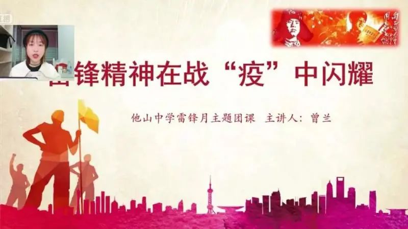 一是结合时事热点,在重要时间节点,帮助学生加强思想建设,筑牢抗疫的心理防线,多次开展思想政治教育。通过网络平台,在小学生少先队员中上队课,在中学生共青团员中上团课,在大学生党员中开展学习习近平总书记讲话精神的研讨,号召学生用力所能及的方式投入到疫情防控之中。五四期间,开展“重温五四历史、坚定战役信心”主题团课。