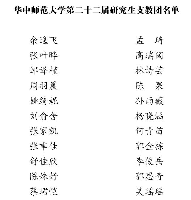 作为首届派往云南牟定的研支团成员,我和我的队友们努力把母校赋予我们的知识和品格带到牟定,传授给学生,让华师精神在牟定生根发芽,把我校研支团在云南的第一面旗帜插稳插牢。一年支教行,一生牟定情。