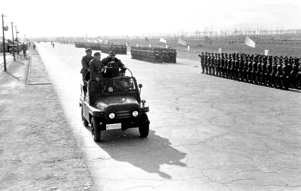 1984年5月8日,63军国庆阅兵方队正式入驻北京沙河机场。经历了太原武宿机场三九严寒磨砺,又迎来北京三伏酷暑的考验。各方队住进帐篷搭建的阅兵村。
