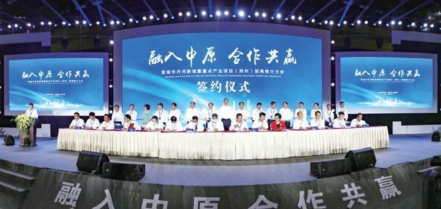7月29日下午,以“新丹河 赢未来”为主题的丹河新城招商引资(郑州)专题推介会在郑州国际会展中心举行,会议吸引了国内外上百家知名企业参会。现场签约5个项目,总金额约57亿元。晋城市丹河新城暨重点产业项目(郑州)系列招商推介活动主会场,丹河集团再签5个项目,总金额约657亿元。签约合计总金额达714元。