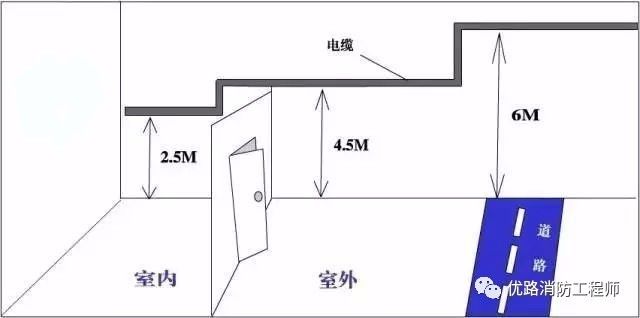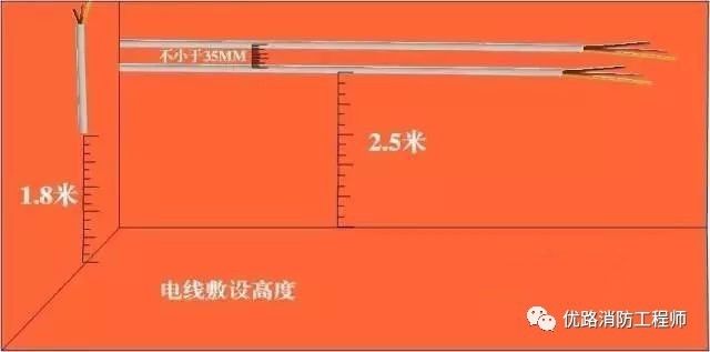 护套导线距离地面最小距离,水平敷设:室内2.5米;垂直敷设:室内1.8米。《低压配电设计规范》(GB50054-2011)7.2.1