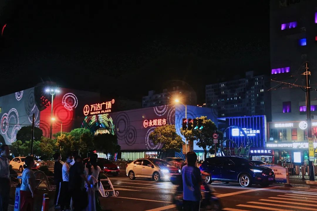 夜如昼的商务区已成为松江最热闹的地段之一。天色渐暗,却是新景,道旁行车如流水,楼顶灯明似月悬。