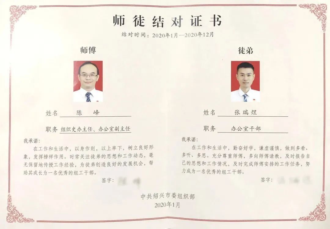 今年以来,绍兴市委组织部开展了以“转变作风践使命,提升能力促担当”为主题的“组工文化年”活动,通过组工干部培训班、跟班学习、师徒结对、挂职锻炼等途径,让文化“软实力”成为赋能组织工作高质量发展的“硬支撑”。“师徒结对”活动作为“组工文化年”的一项重要内容,为年轻干部开辟了提升能力、尽快成长的“快车道”。