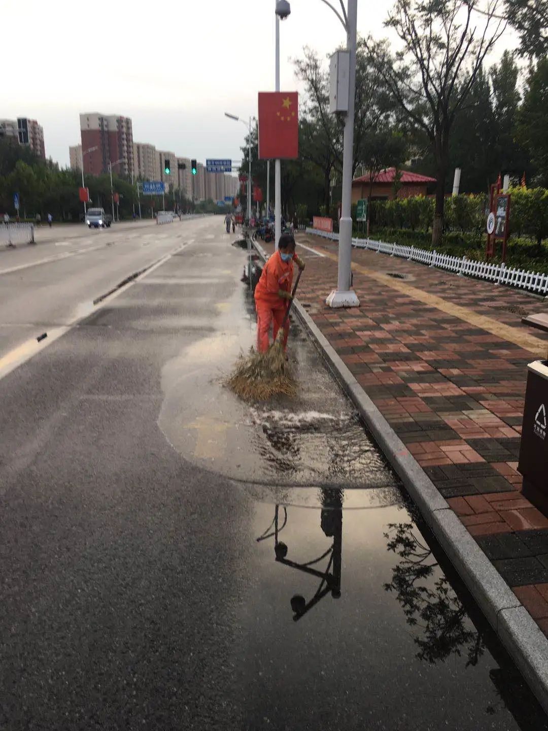 今天凌晨1点,区城管委接到消息,和畅路两侧树木因风大出现倒伏情况,主要领导带领园林绿化中心负责同志第一时间赶赴现场,进行险情排除。同时,针对夜间大风降雨天气,区市容委提前安排部署,安排垃圾清理作业队及两个保洁公司加强对落叶、积水的清理;安排机械车辆加强清扫,配合工人及时清理路面垃圾积水;加强巡查,对道路照明设施、景观照明设施、广告牌进行检查,确保城区安全稳定。