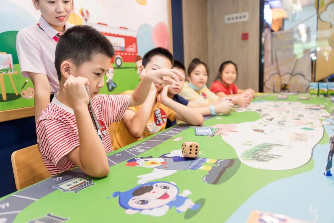 “在餐厅用餐浪费粮食不光盘,罚20分。”孩子们围坐在文明礼仪游艺棋桌旁,通过掷骰子轮流前进,到达特定位置可以挑战抽卡,如果抽到的卡是不文明的行为,会有相应的罚分,如果是文明行为则会获得奖励分。