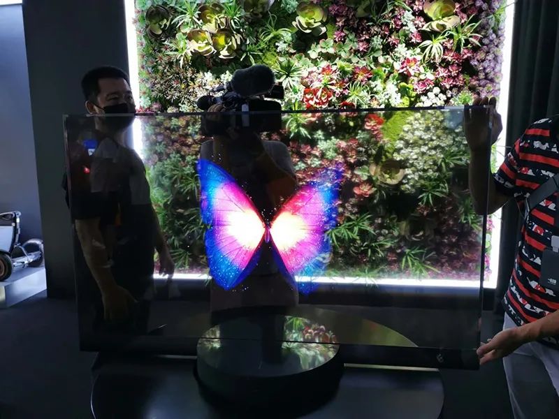 小米透明电视,采用的是透明OLED材质,屏幕厚度仅为5.7mm。在现场,记者看到,住了底座和边缘是黑色实体外,中间的屏幕和透明玻璃无异。