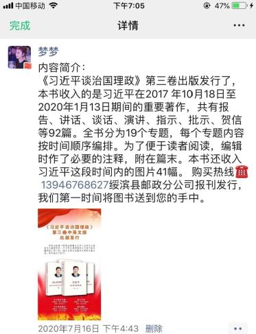 黑龙江省绥滨县邮政分公司职工第一时间将该书发售消息发布到微信朋友圈,图文并茂,受到客户欢迎。