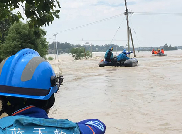 陈陆带领3名“尖子”队员,在同大镇连河村党支部副书记王松的指引下乘坐救援艇搜救。一行人从上午9点多出发,11点多返回,成功救出两名村民。
