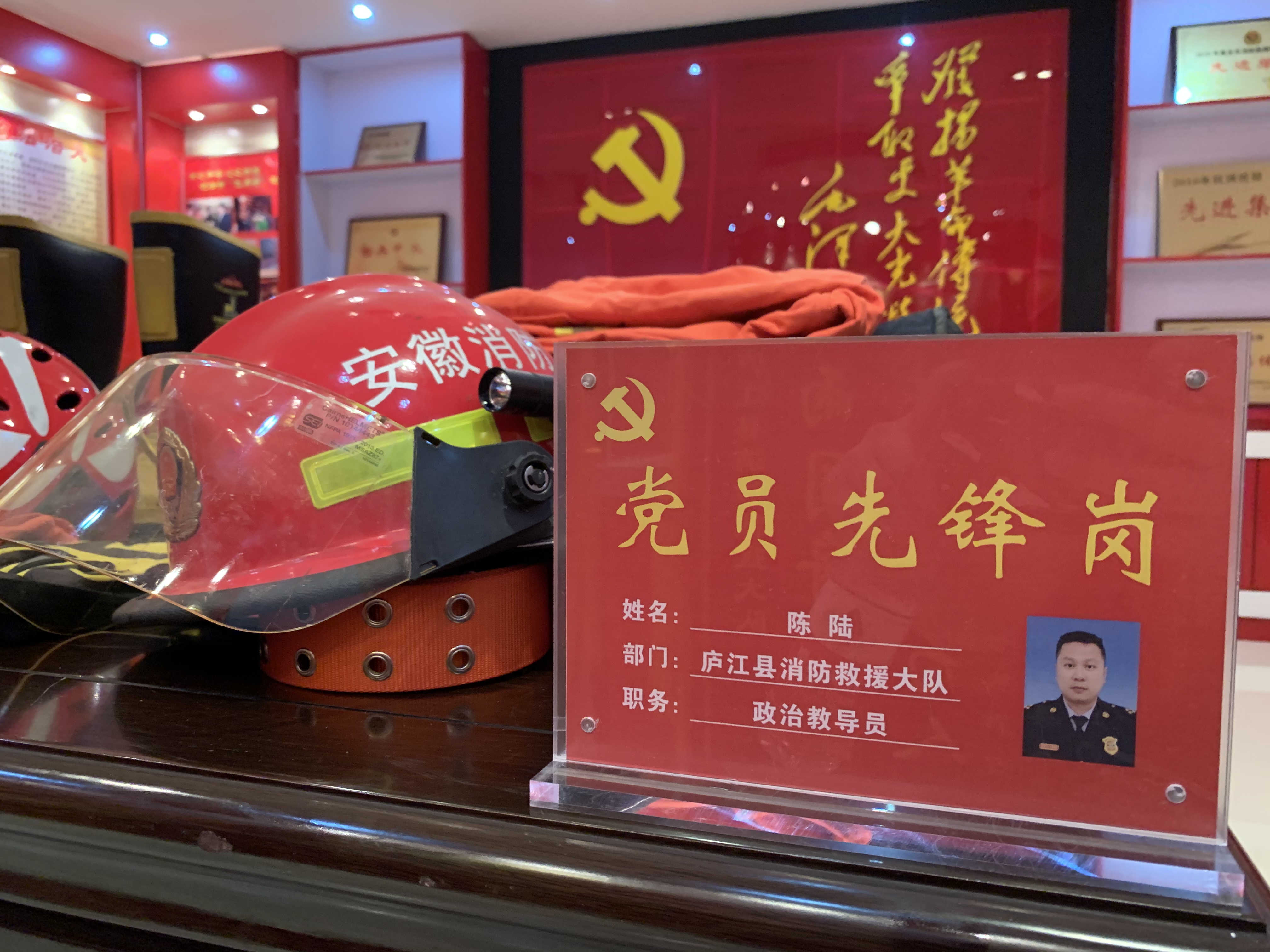 村民撤离的那段时间里,庐江县消防救援大队的报警电话一个接着一个。大队教导员陈陆带着消防救援队员马不停蹄,与洪水抢时间。直到落水牺牲,他几乎没有休息。